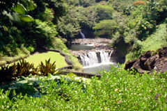 We plan and design events so to have this gorgeous property in the heart of Hilo is a . The House is positioned on top . Spectacular falls view at the River Retreat at Reeds Island. View from house deck and patio area of the Wailuku River and falls. According to legend - the play ground of Royalty.
